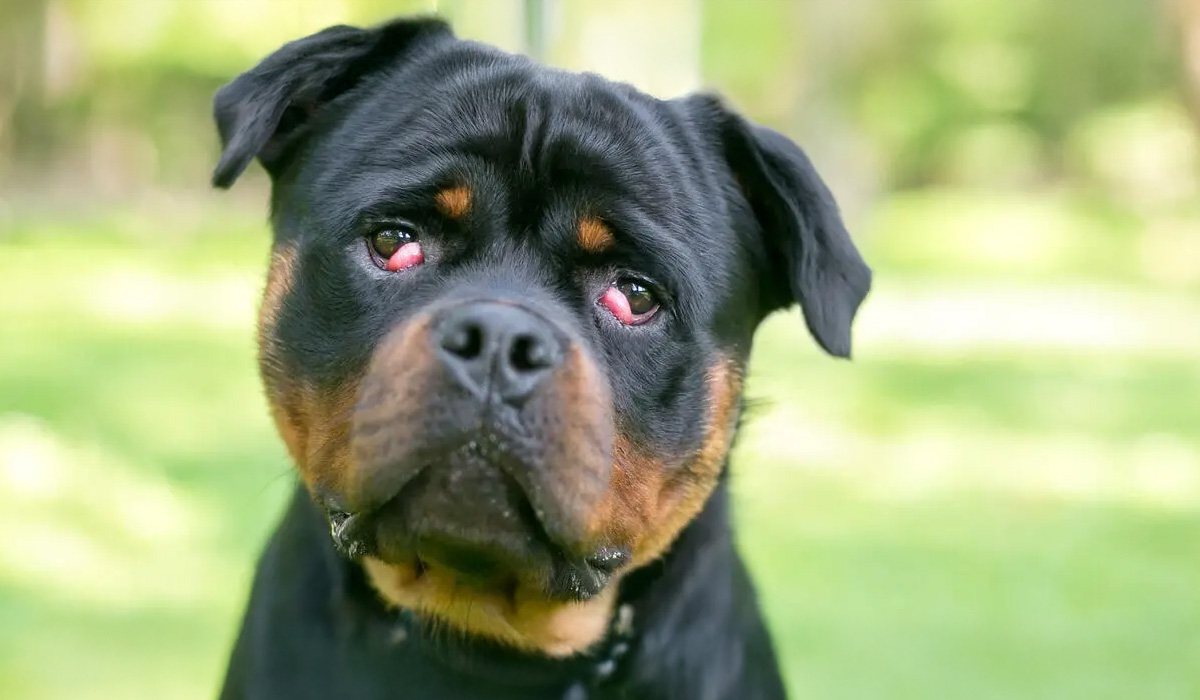 Cherry eye la câini este o condiție în care glanda lacrimală a celei de-a treia pleoape prolapsează, cauzând apariția unui nodul roșu și umflat în colțul ochiului. Această membrană nictitantă a pleoapei ajută la protejarea ochiului și la menținerea umidității acestuia. Nodul poate să apară și să dispară temporar, însă este indicat ca orice semn vizibil să determine vizita la veterinar.